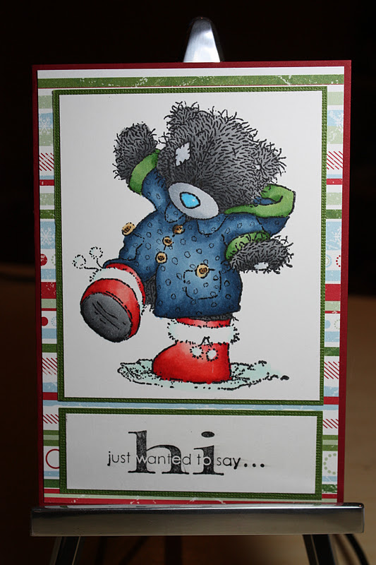 Ich mag Euch nochmal eine Karte mit den süßen "Tatty"-Bears (eigentlich heißen die "Me to You") zeigen. Ist der nicht süß? Ach, ich find die so goldig!